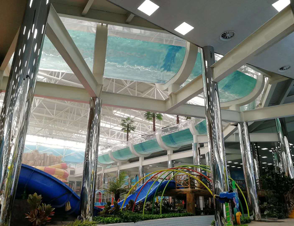 项目概况:石家庄天山海世界坐落在河北省石家庄市高新开发区,国家AAAA景区,占地60余亩,总建筑面积17000平方米。其中压克力漂流河,其主体部分长达80多米,位于天山海世界戏水大厅二层。蜿蜒的漂流河巧妙地穿越山洞,与飞流直下的瀑布,组成了水落碧潭、奔腾翻涌的壮观景象。