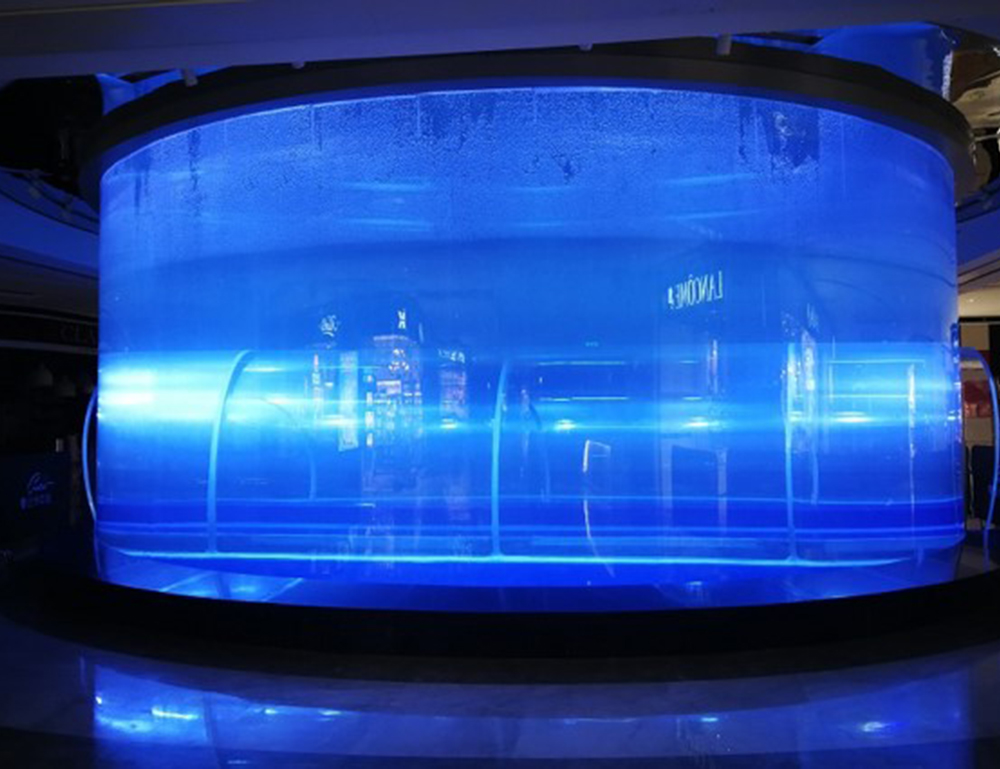 汤臣科技打造的这个亚克力隧道水族缸,直径10米,高度10米,厚度200,隧道厚度130MM