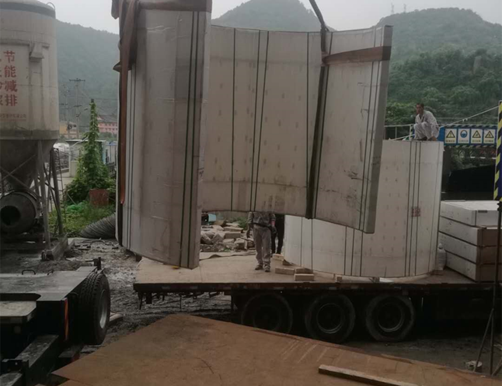 The overall weight of the project is 208 tons, with the maximum size of 16.56m*5.9m, and the maximum thickness of 390mm. Technical difficulty: bell mouth acrylic, diameter: 8m*5.5m; thickness: 120mm; and 9 gaps are injected and spliced at one time on site.