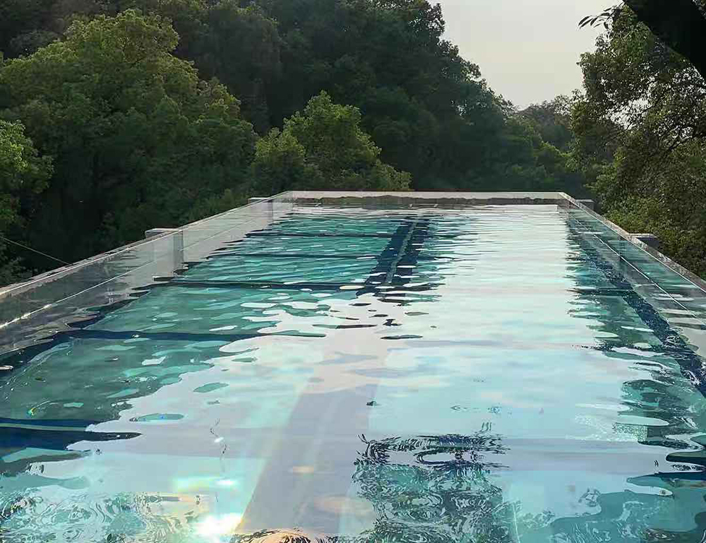 项目概况:项目为改造项目,绿树成荫,别有一番惬意。泳池采用145mm厚的亚克力。由于道路改造,承载限重,因此,亚克力板材的运输及吊装为项目的重难点。